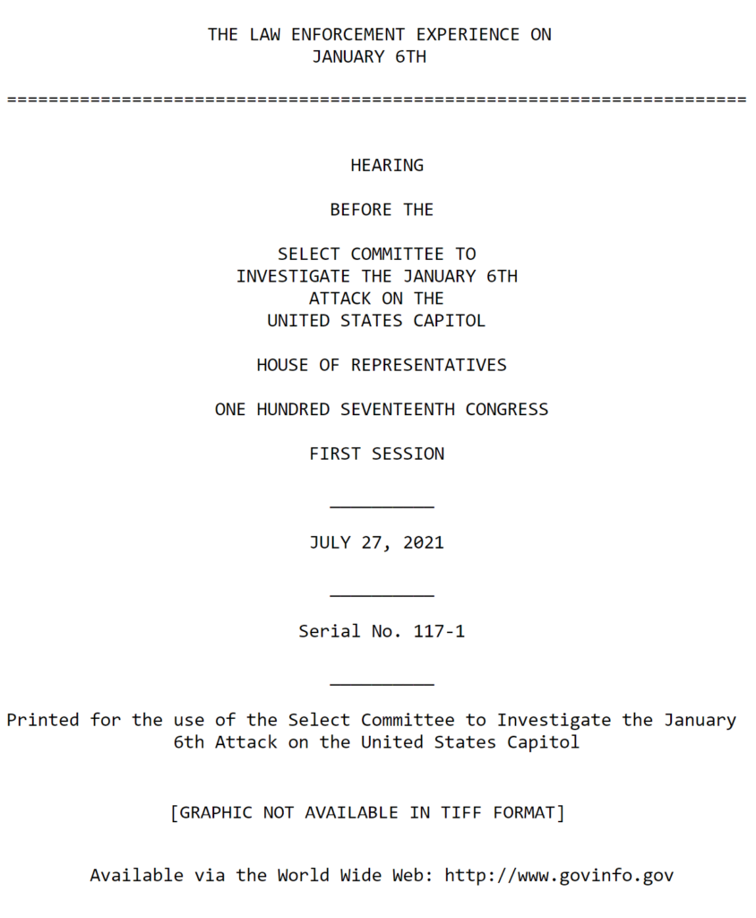 Transcript of the first hearing ever given by Congress about the the events of January 6th.
